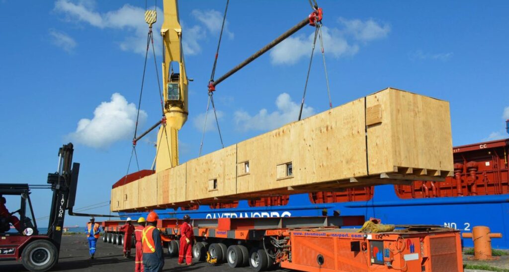 Use of cranes, flat racks, and heavy-lift vehicles for secure transport.